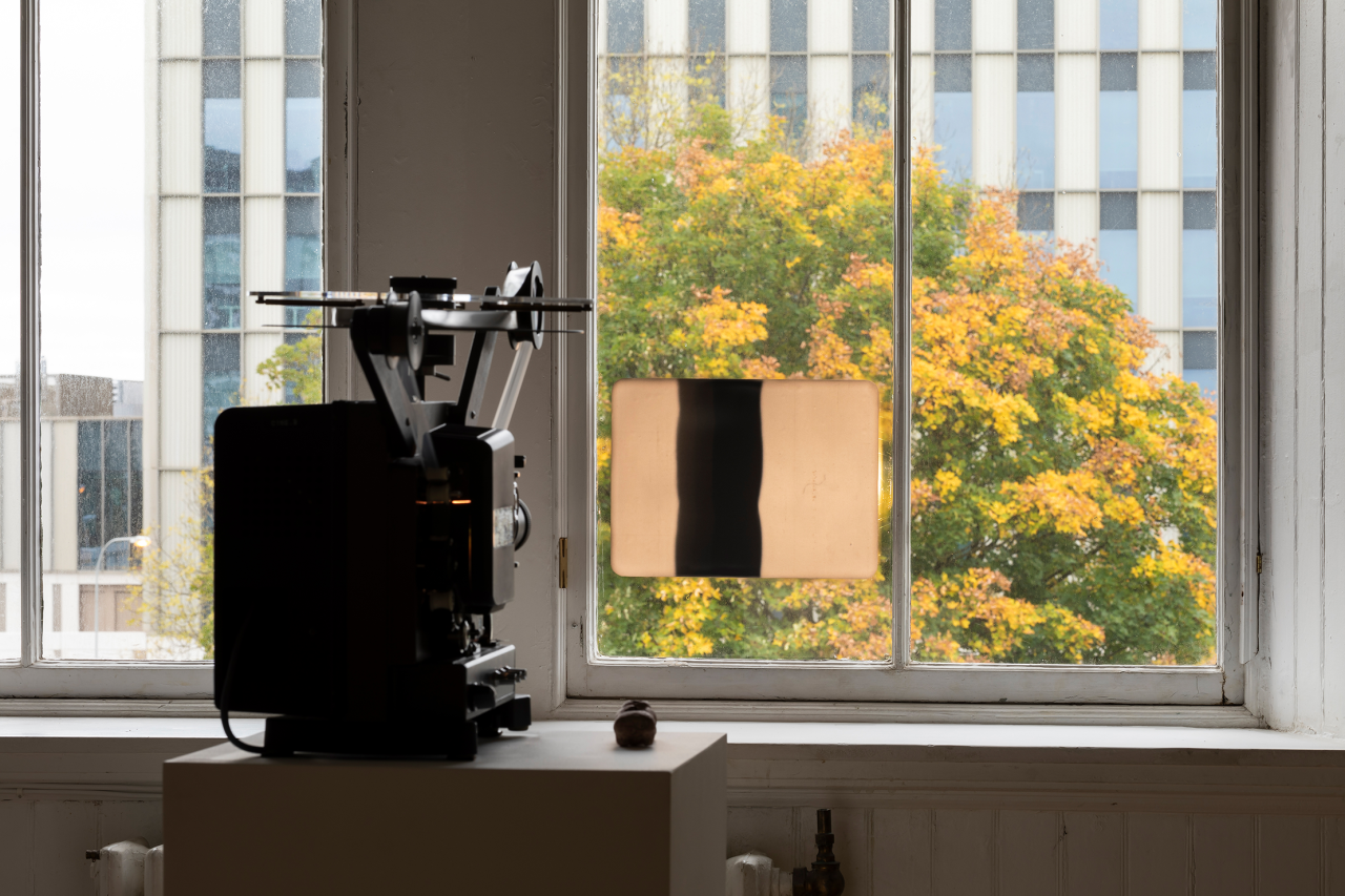 A lightweight, portable film, exactly one quarter the width of 35mm stock, 8.75mm was used as a projection medium around remote and rural regions where mobile projection units (makeshift cinemas) brought educational and propogandist entertainment to communities beyond the city. A dedicated camera device was never created for the 8.75mm film, instead, this format relied on transfers from 35mm film, raising the central question of Peng’s work: What is a film without a camera?