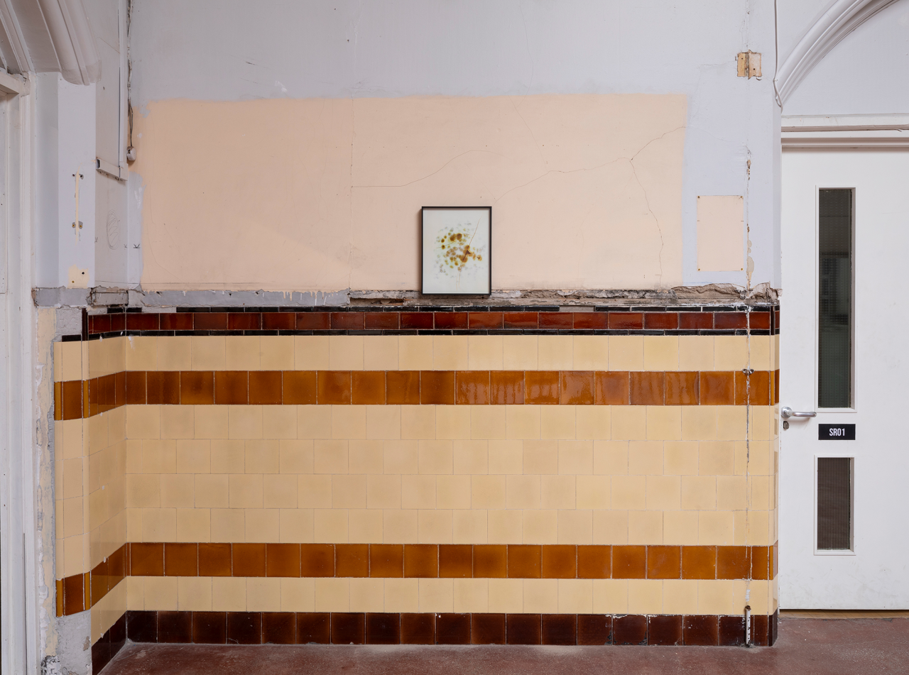 Accompanying ‘Afternoon Hearsay’ is ‘Déjà Vu’ (2023), an installation combining 16mm film projection, text, sound, and a small clay sculpture; ‘Autocorrects’ (2023), a video installation that plays with the format of a pop music video; and a new chromatic photographic print, ‘Untitled (second press #2)’ (2025).