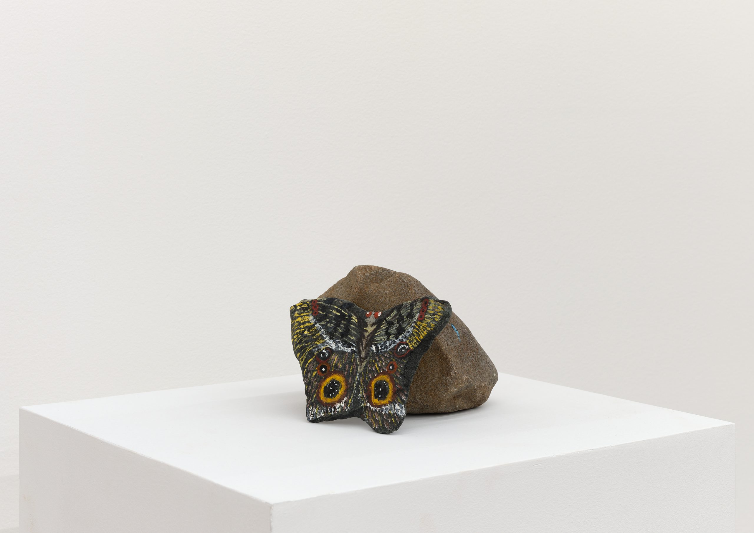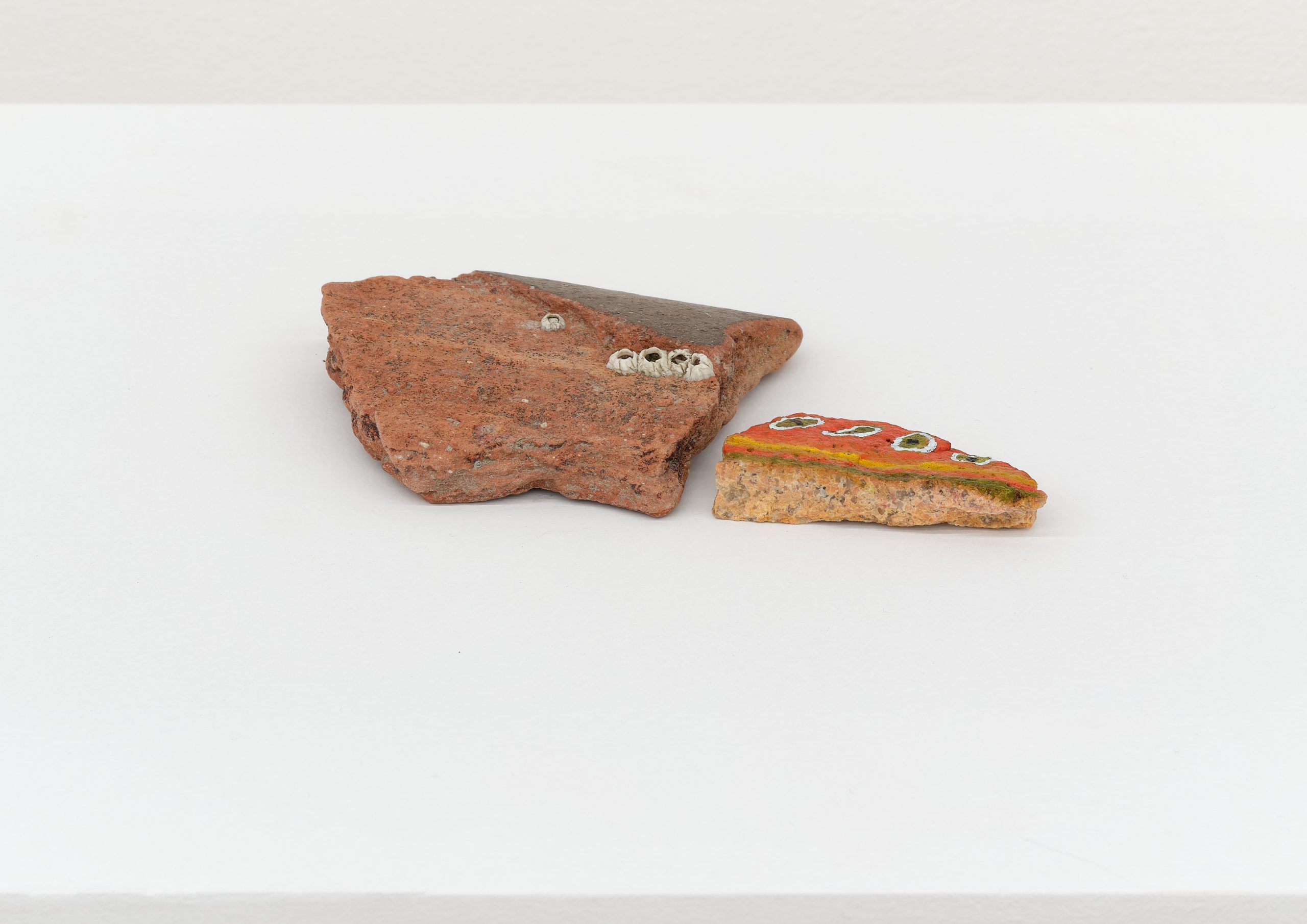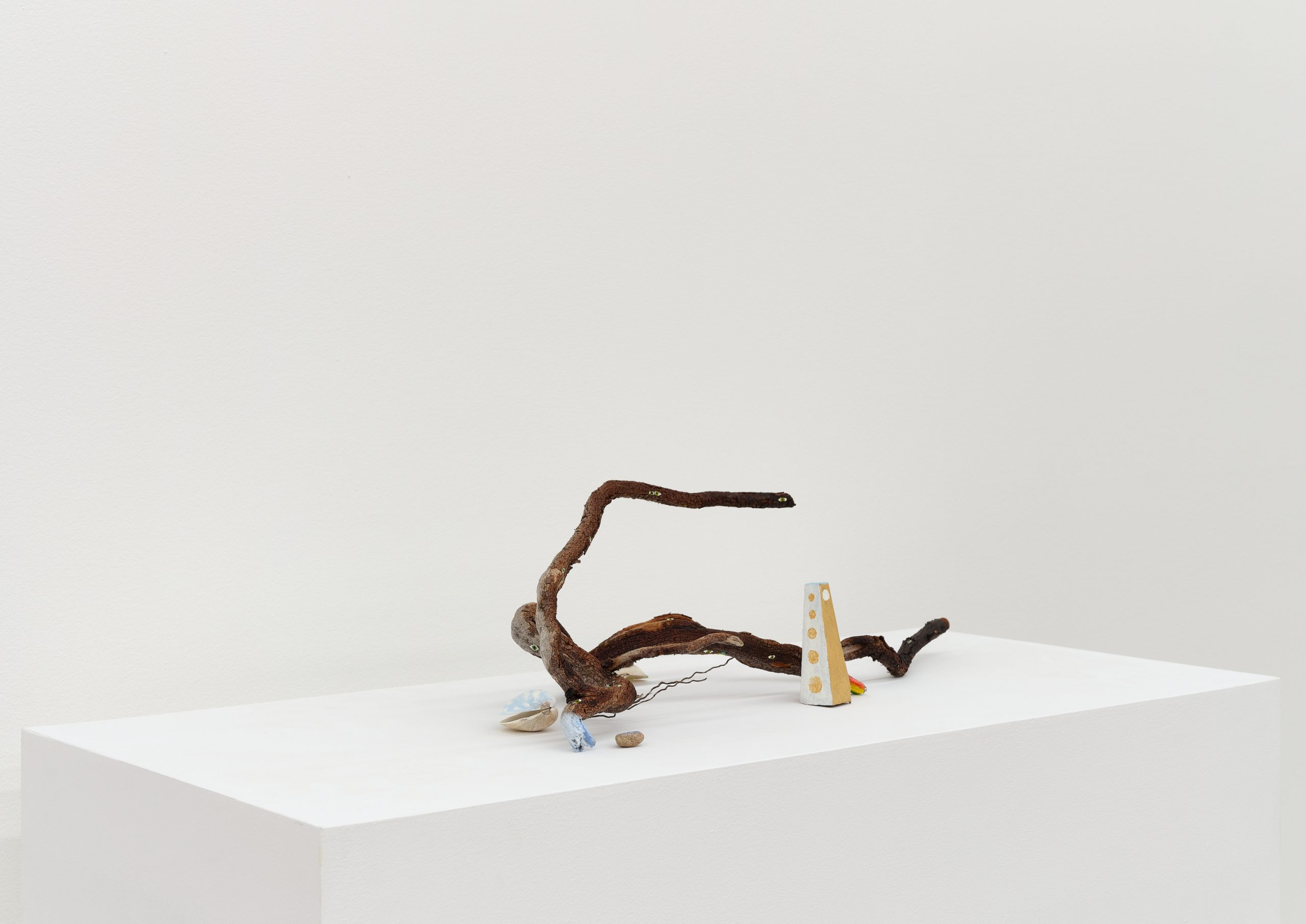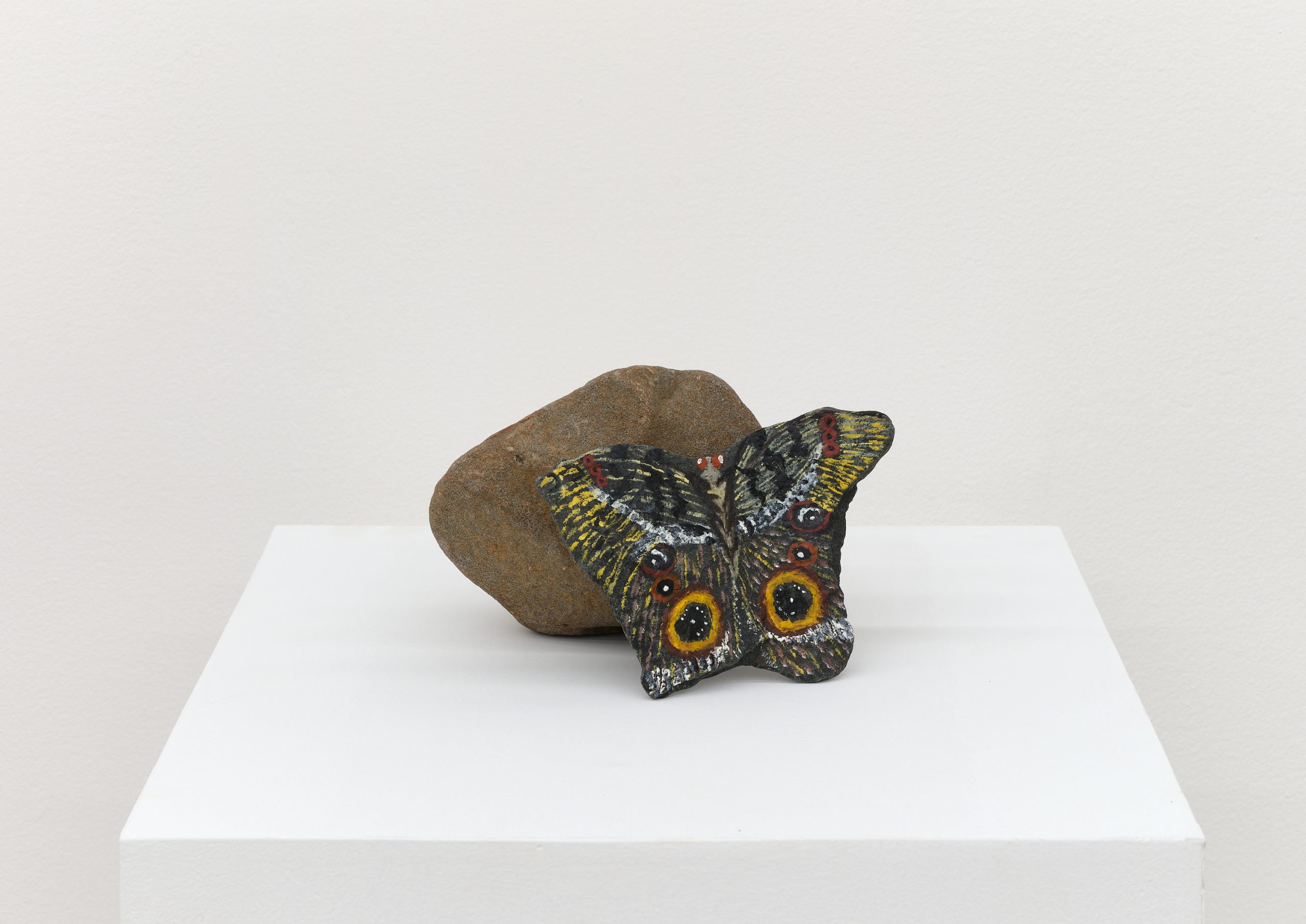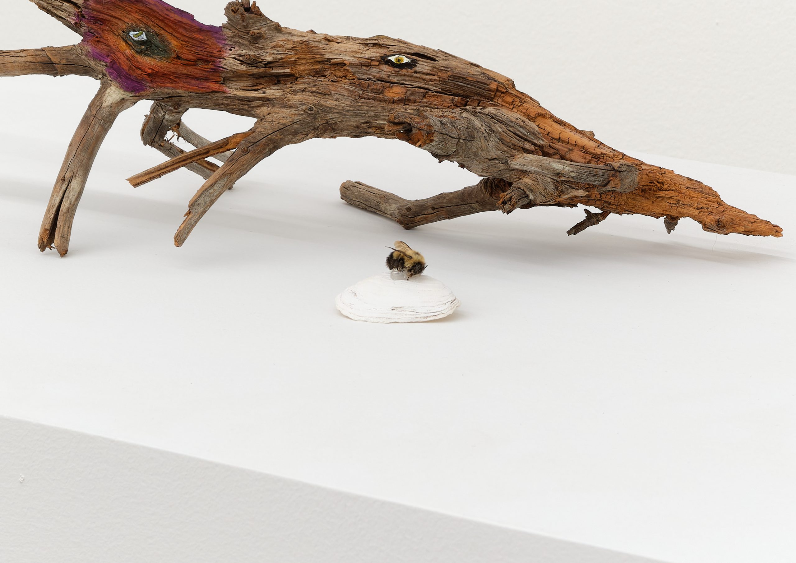 Oil on rock, wood, shell, acorns