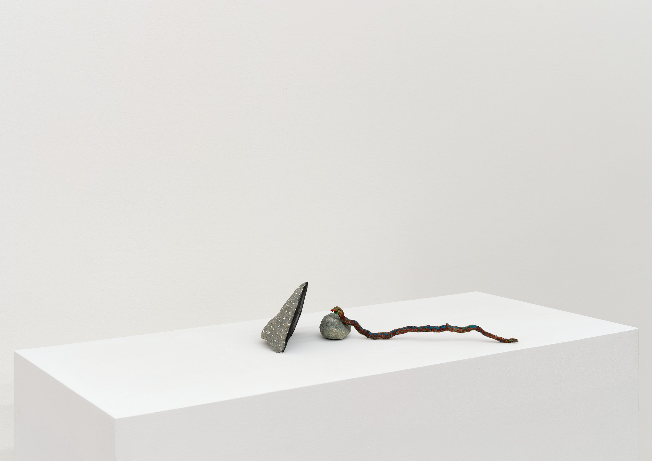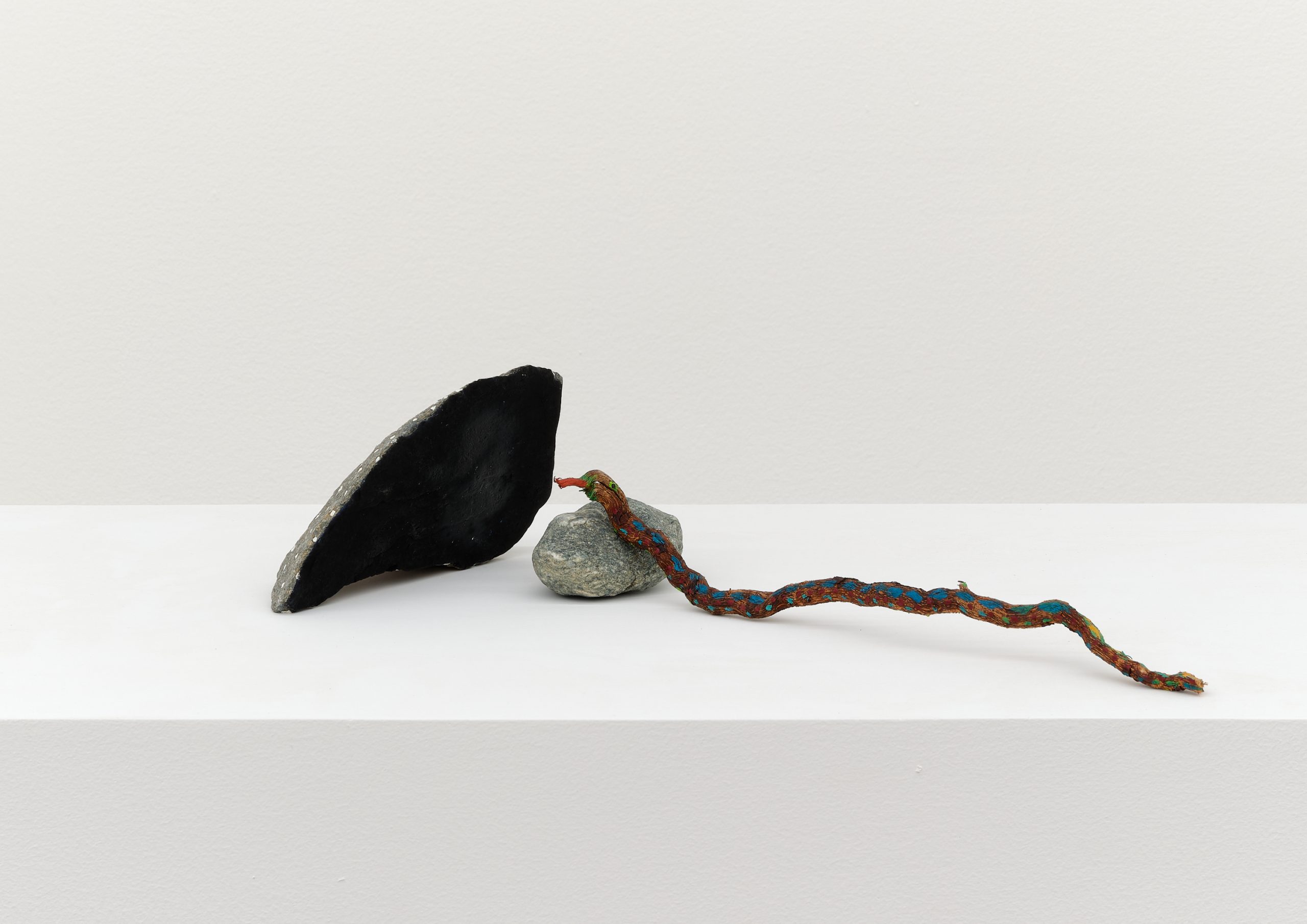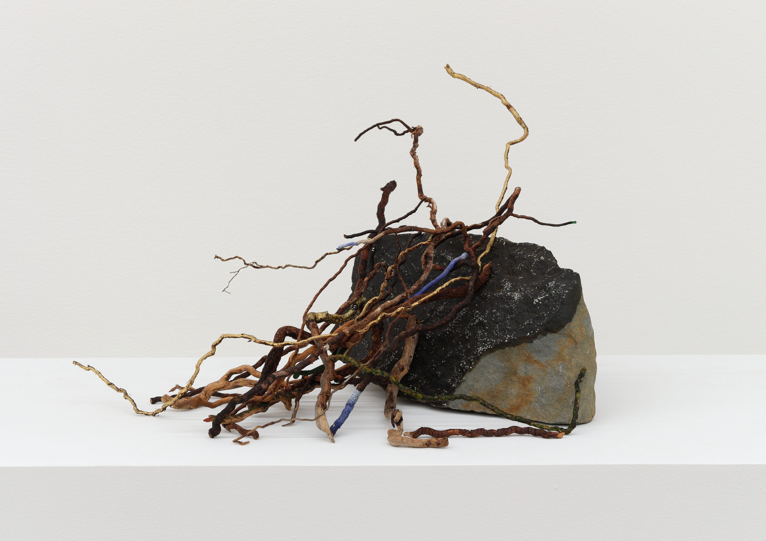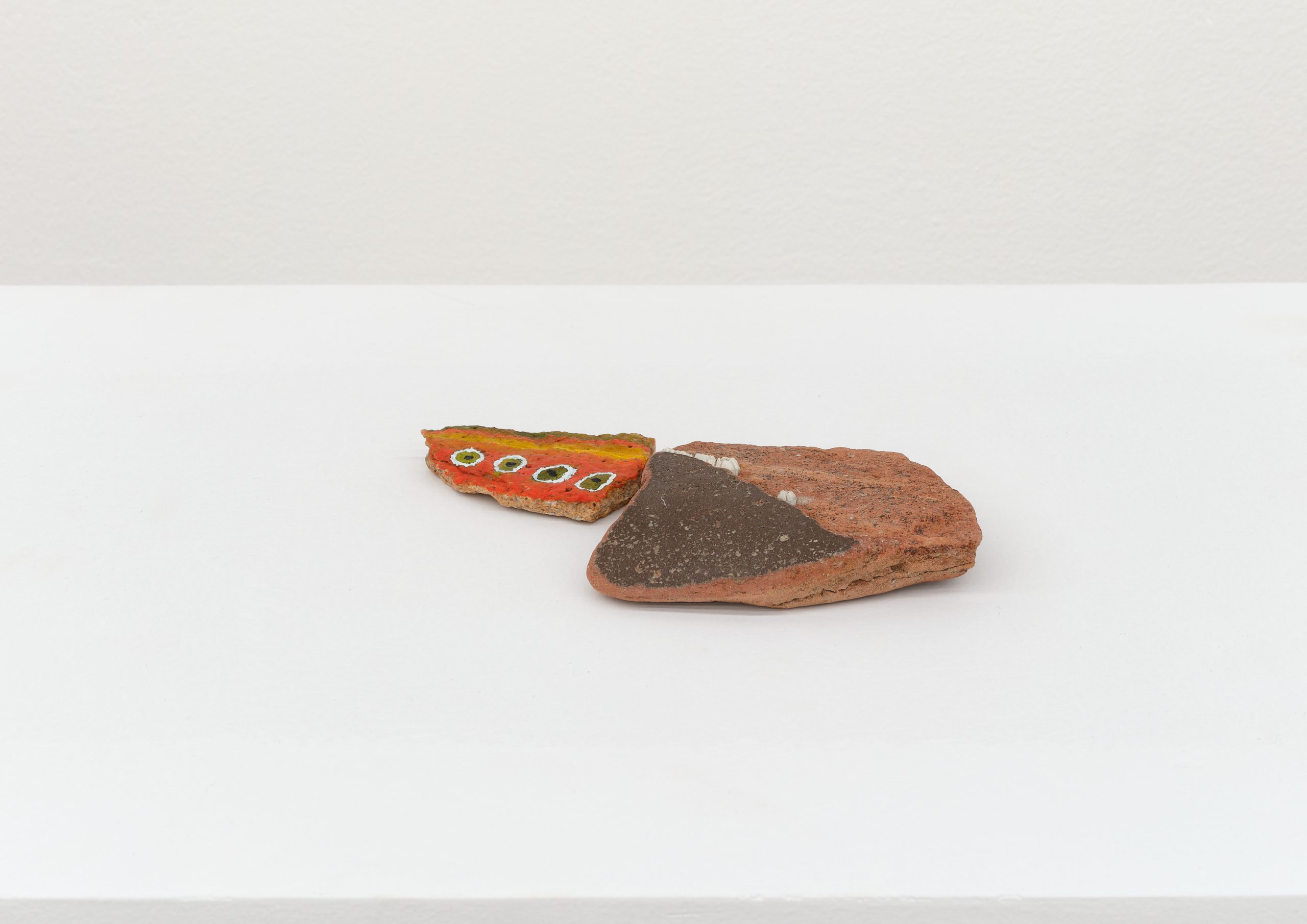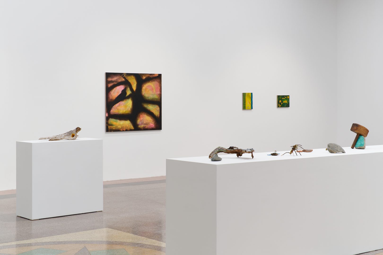 Oil on rock, wood, shell, acorns