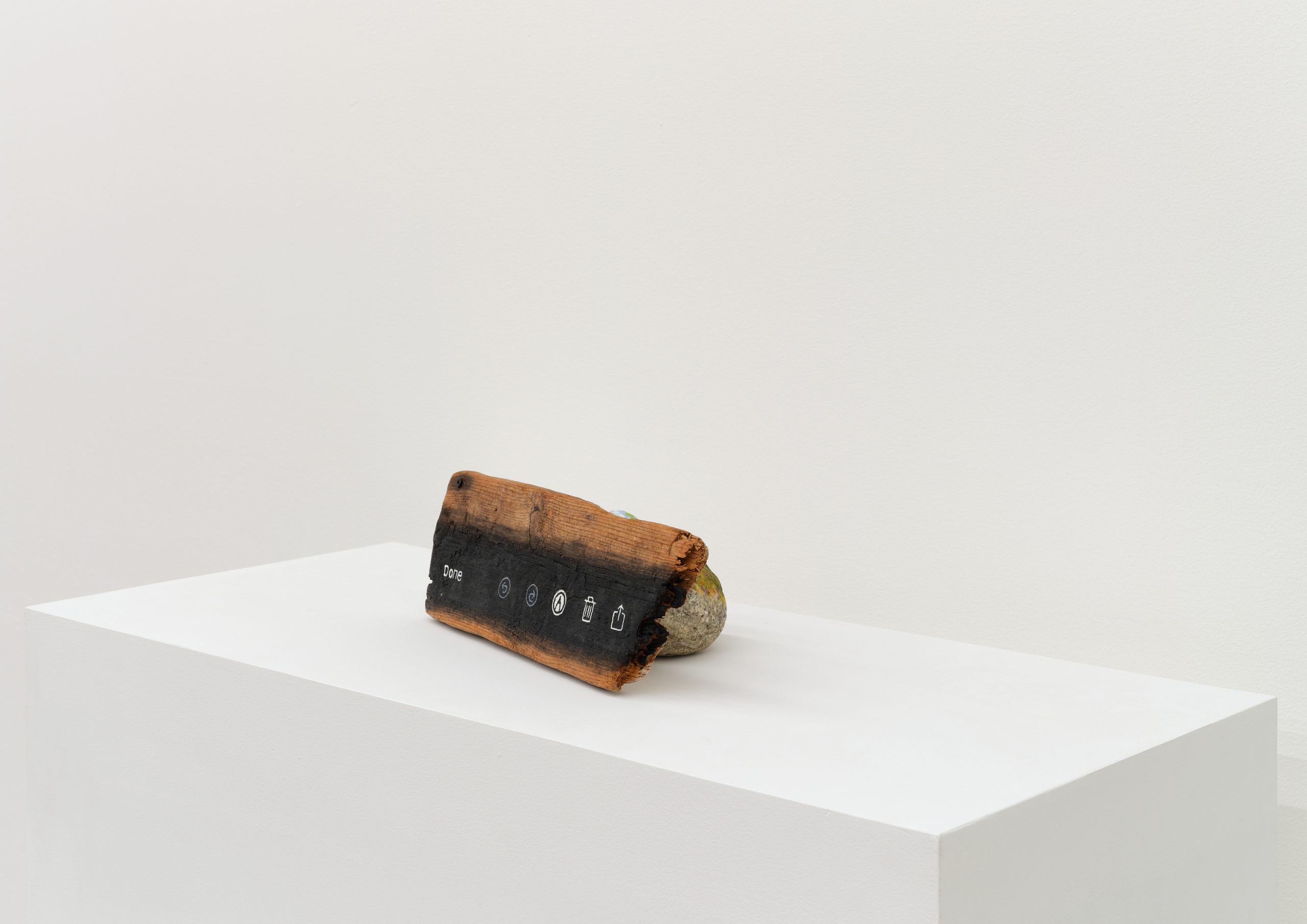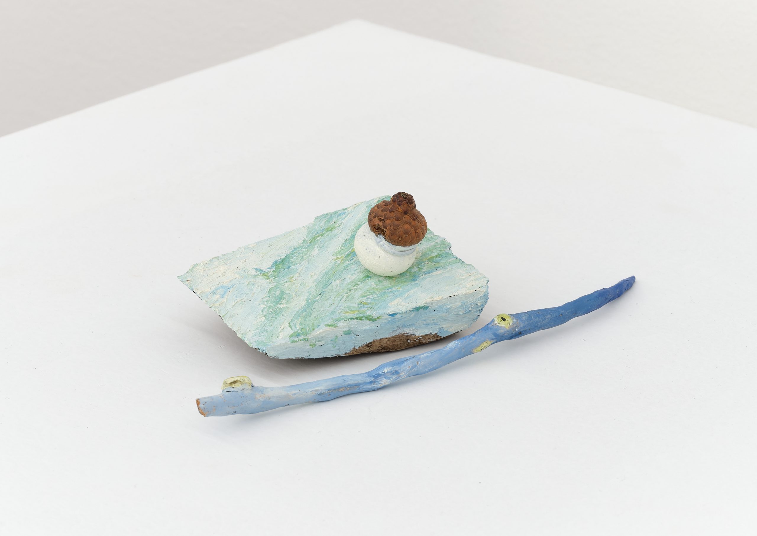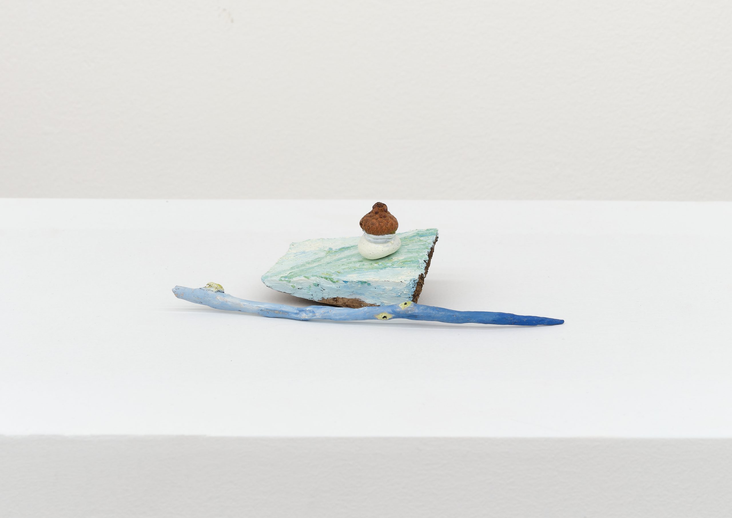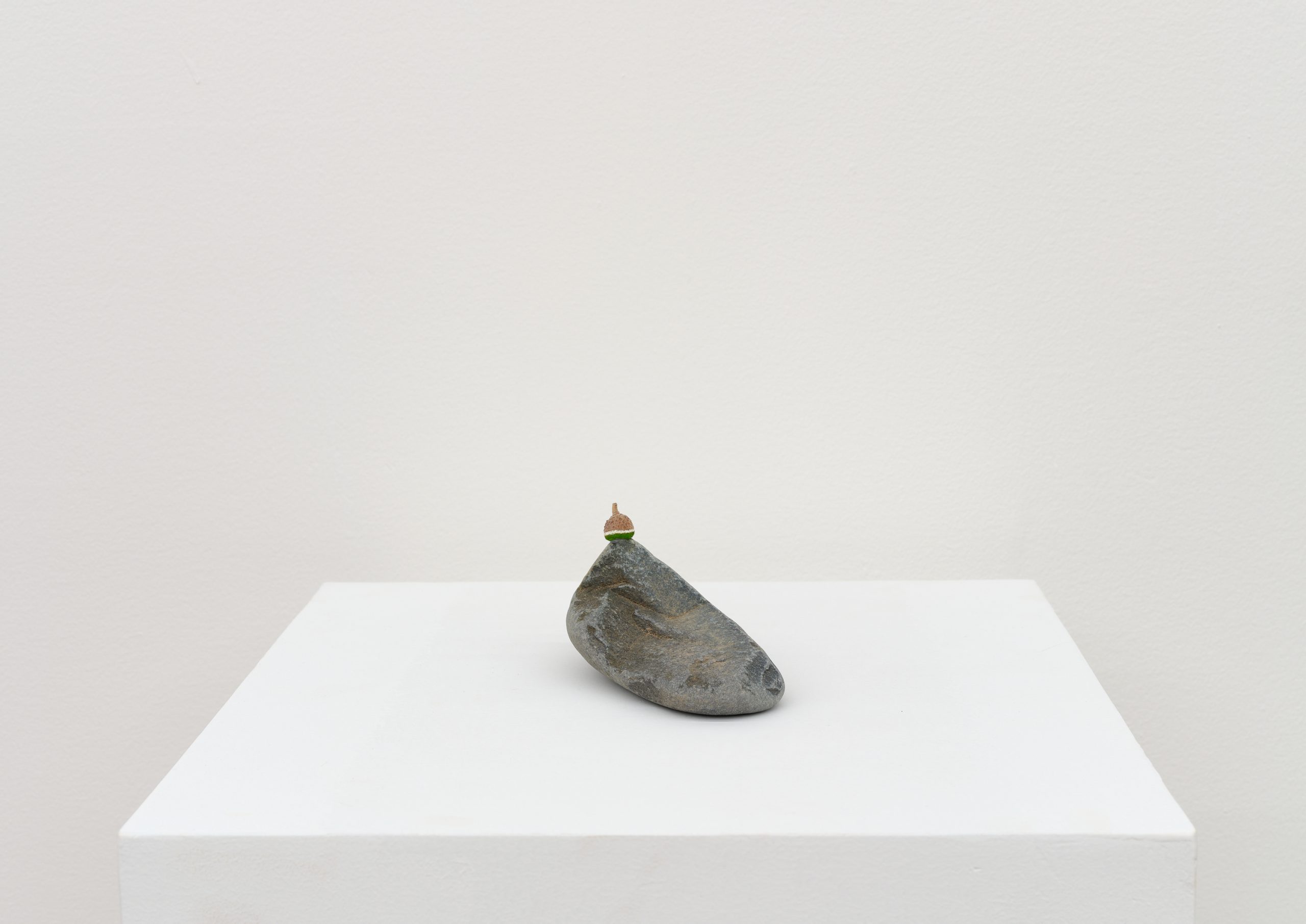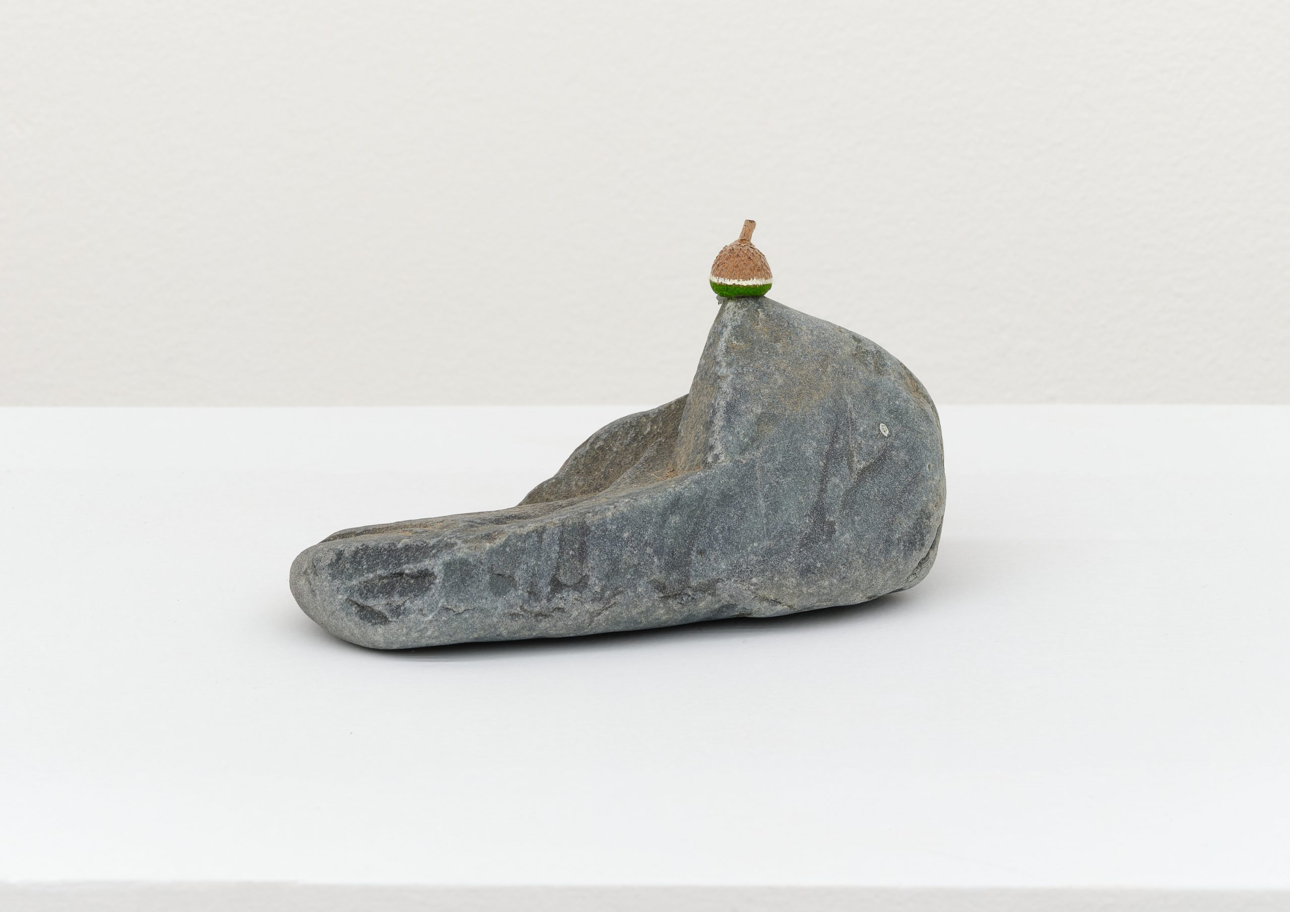 Oil on wood, rock, acorn
