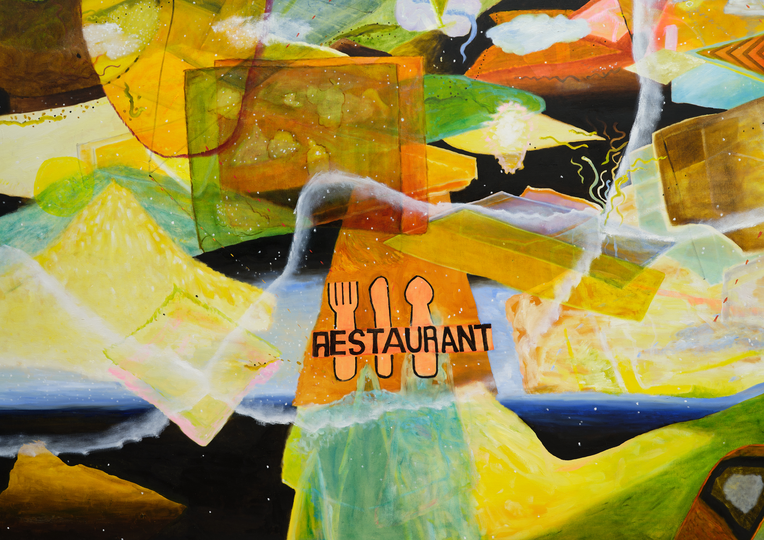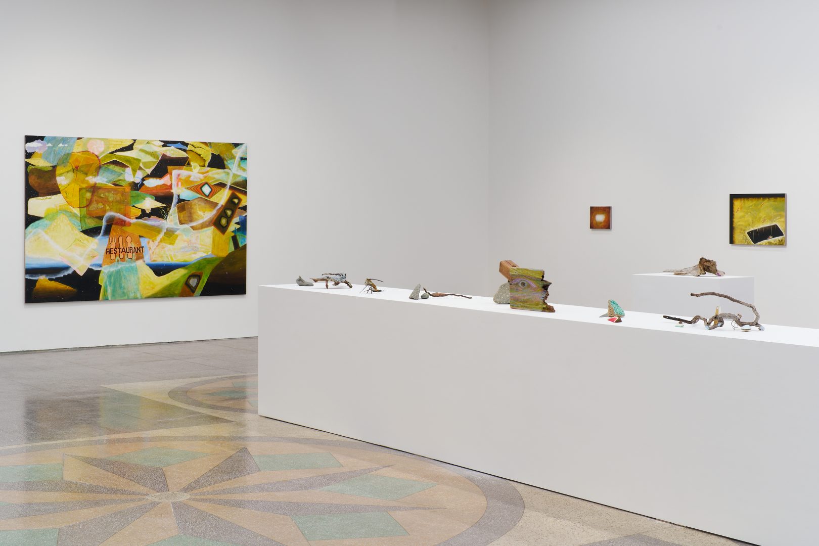 The painting Feeding The Eternal Infinite depicts a cosmos at once exploding into existence and receding from it. Everything moves through everything else, and all is in motion. Among the cluster of sculptures titled Rain of Wisdom, a chorus of shells, each granted only one eye, watches us. Or do they, in fact, grant us a window into a kaleidoscopic ultra-reality through this open eye? Experienced together, the paintings and sculptures conspire to playfully expose the profound co-emergence of realities that occur in – and as – our world.