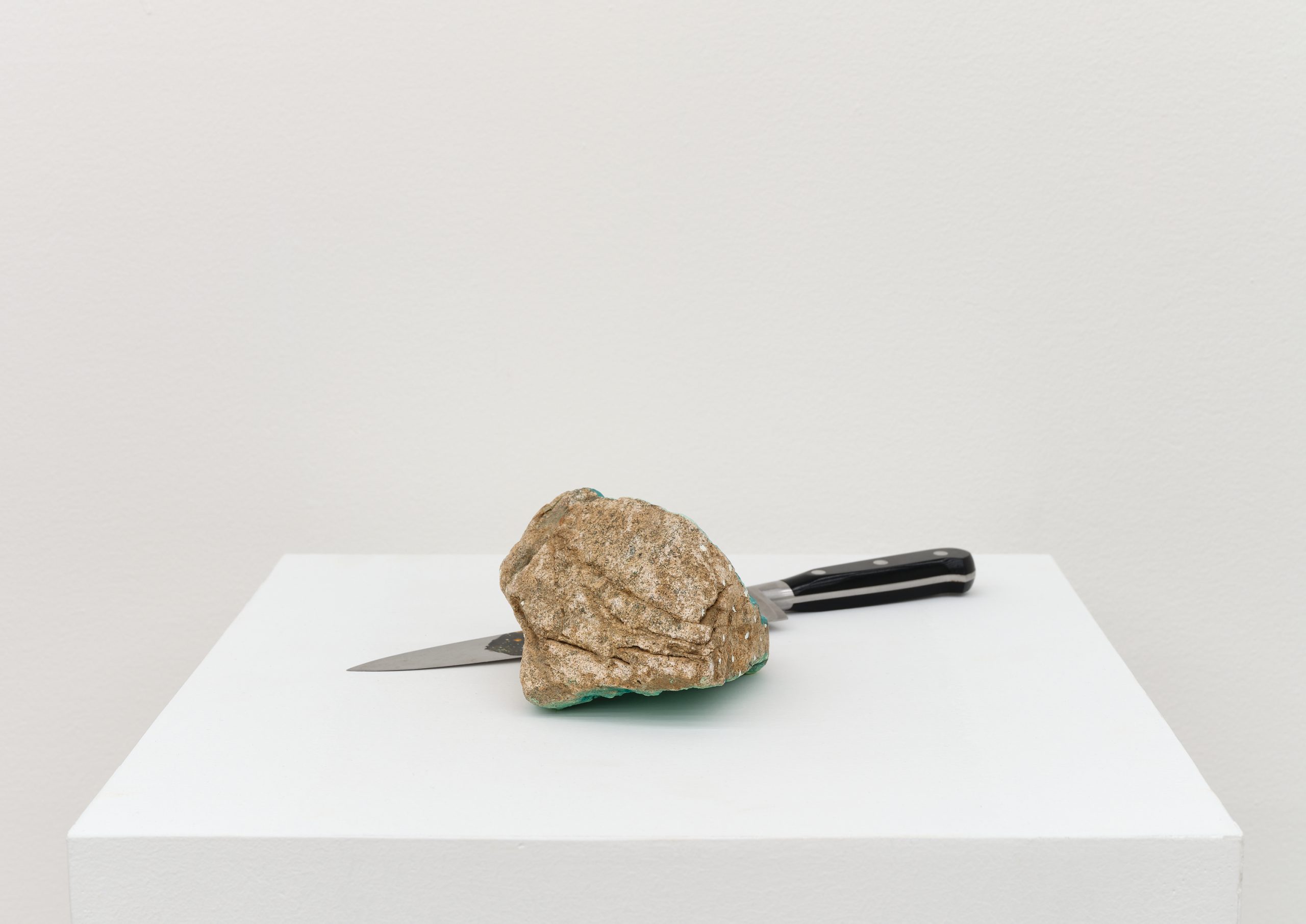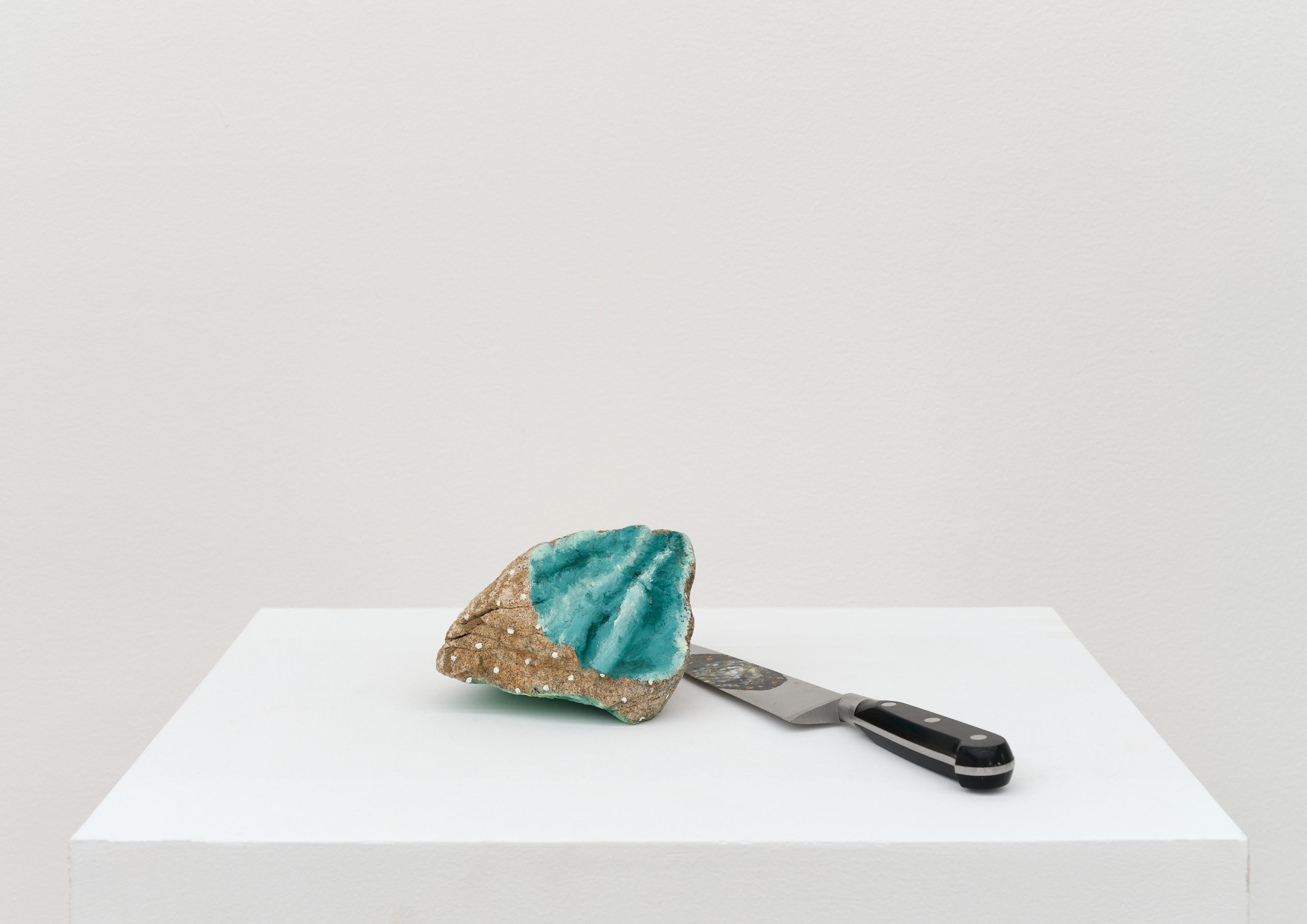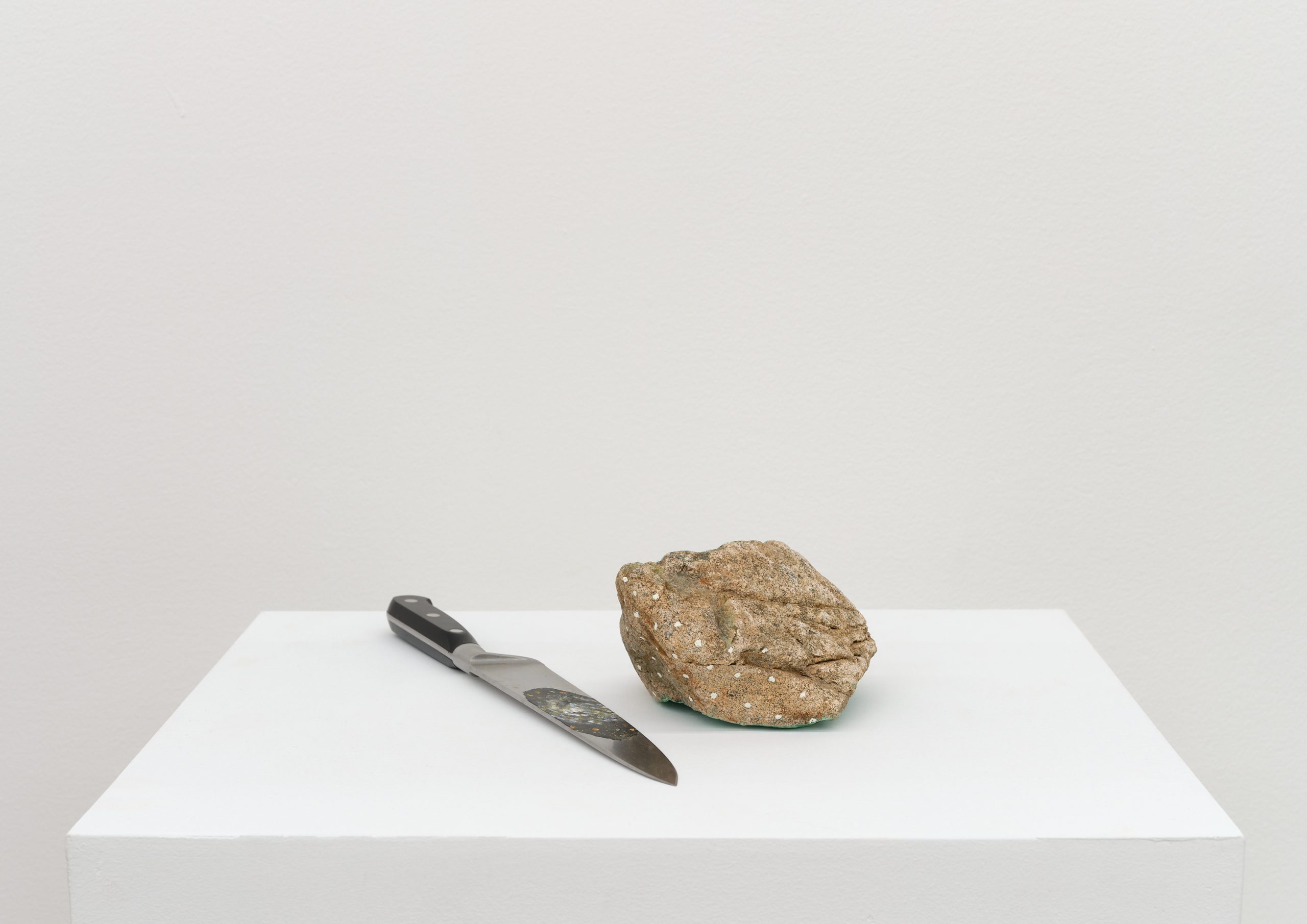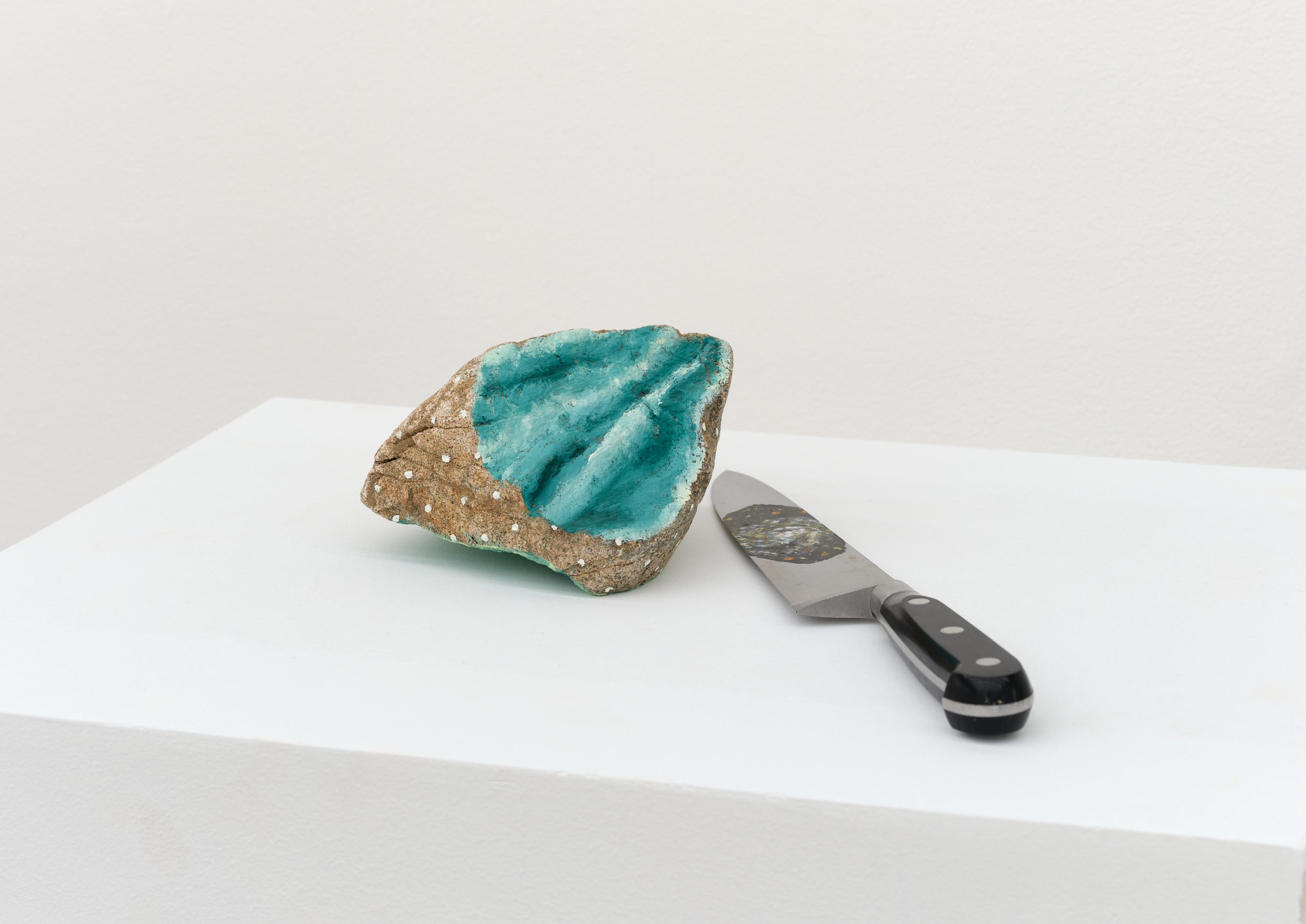 Oil on wood, knife, rock