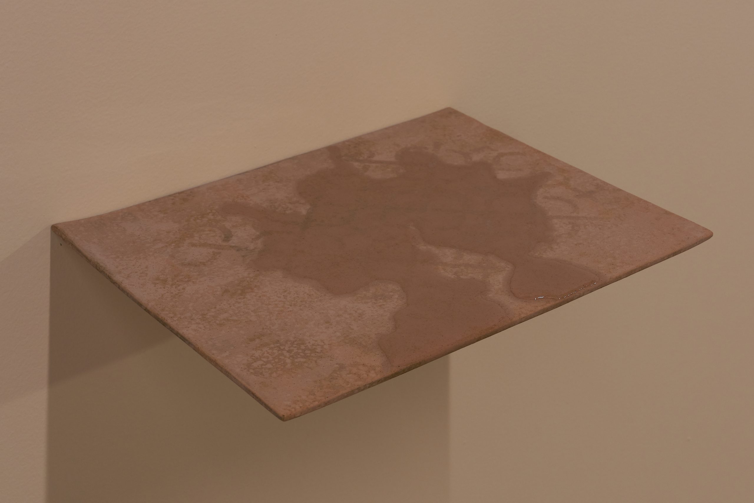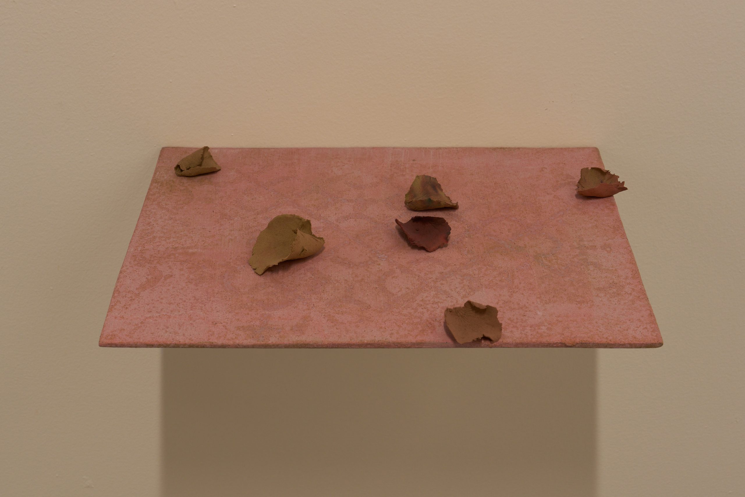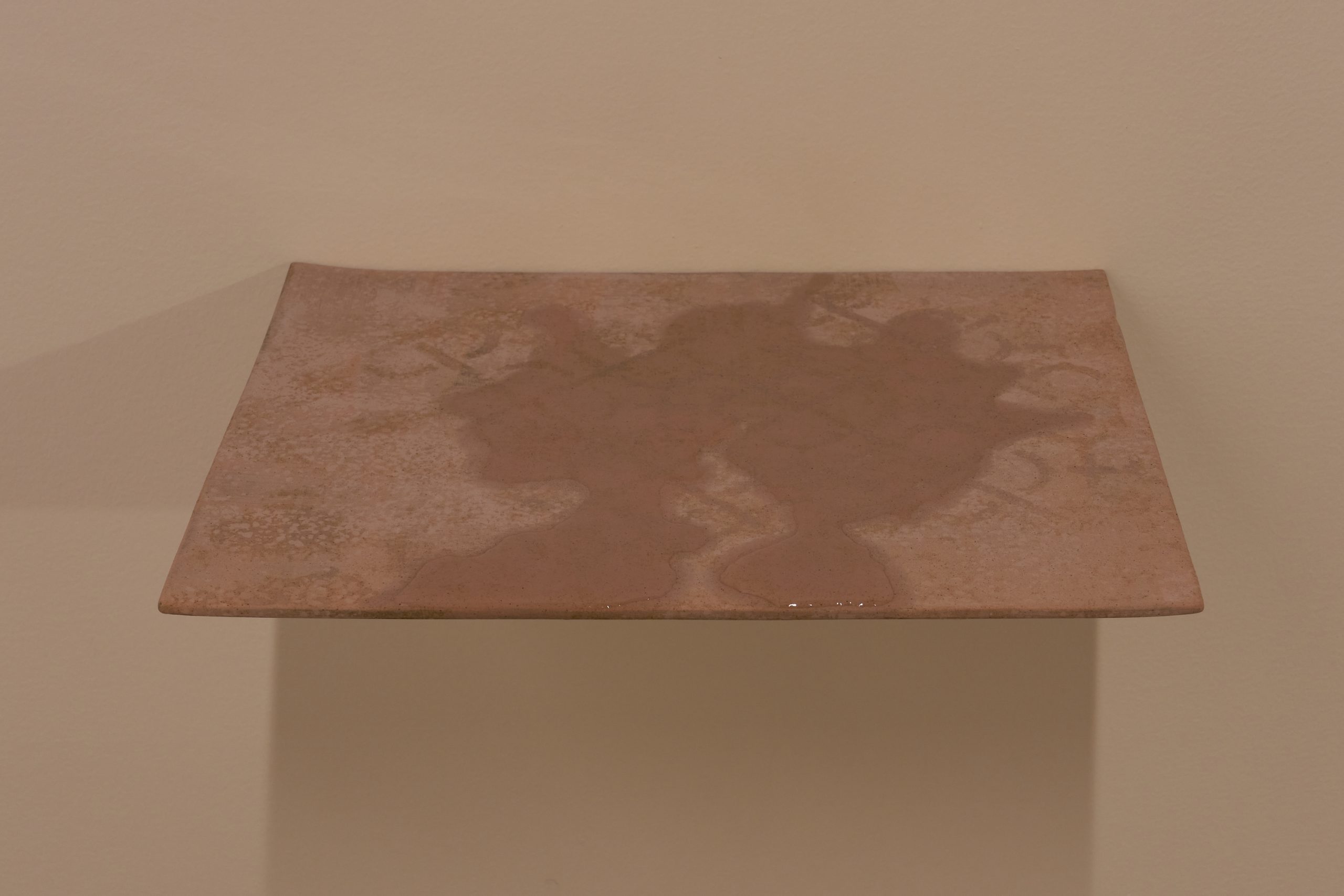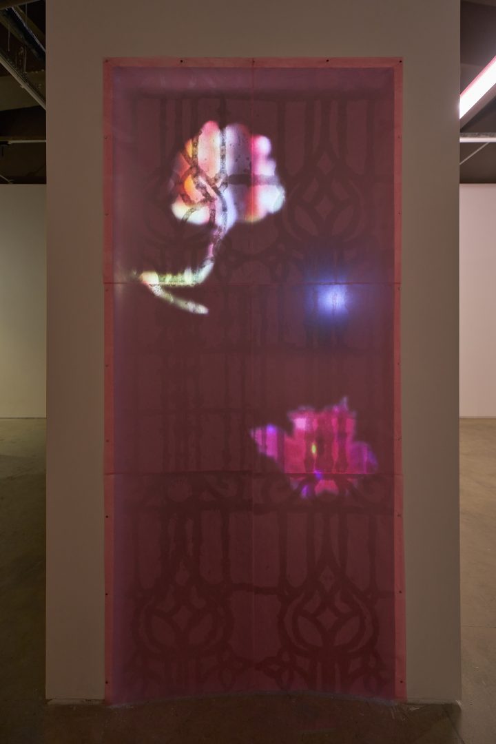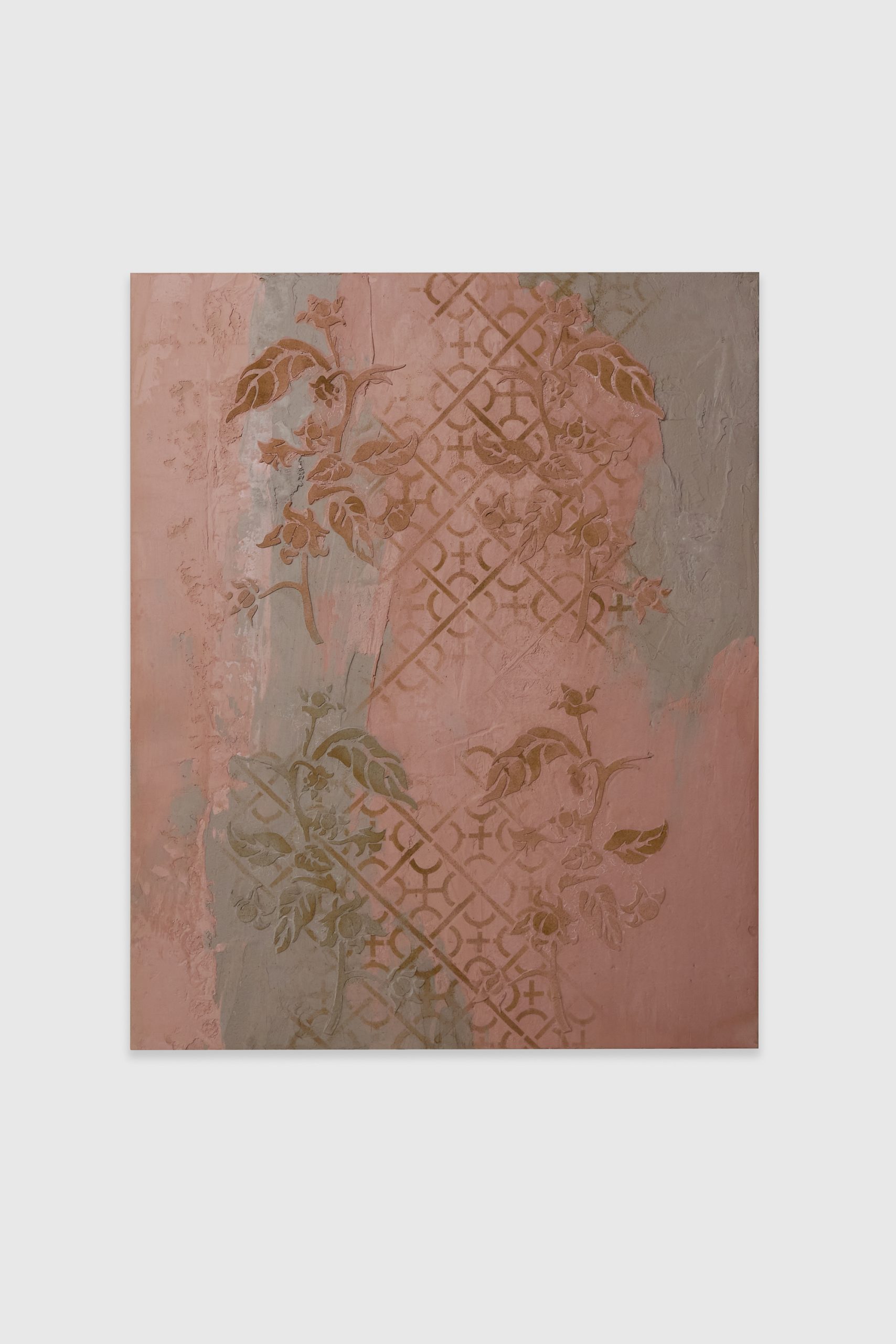 在媒介的选择上,艺术家有意使用和发展具有渗透性质(porous material) 且如有机体般持续变化的材料。香板作品承托的陶瓷面板,其斑驳多孔的表面,既是材料渗透性的视觉隐喻,也记录下香灰燃尽的痕迹;香油蔓延的纸帘以其半透明性介入空间,如古典窗屏看似隔断也似邀请,气味随着纸帘的轻微摆动而扩散,成为观看的延长;浮雕墙由催情香料与墙体装饰涂料融合而成,斑驳的印记如旧时舞厅中日久留下的油渍痕迹,如同附着于皮肤。这些物质与周围环境(包括来访者的身体)进行缓慢而持久的交换,邀请来访者在驻足中体会逐渐于感官中凝聚的欲望张力。正如艺术家研究的现实映照,在中国潮汕地区的“黑舞厅”,那里粉色木板用以遮挡视线,窗框微微透光,夜晚时,中老年的阿姨们卸下一部分的自己,穿上另一部分的自我与珍藏的服装来到舞厅与舞伴赴会。舞厅内幽暗的灯光不均匀地洒在人们的皮肤上,空气中混杂着汗水、香水和肉身的气息。