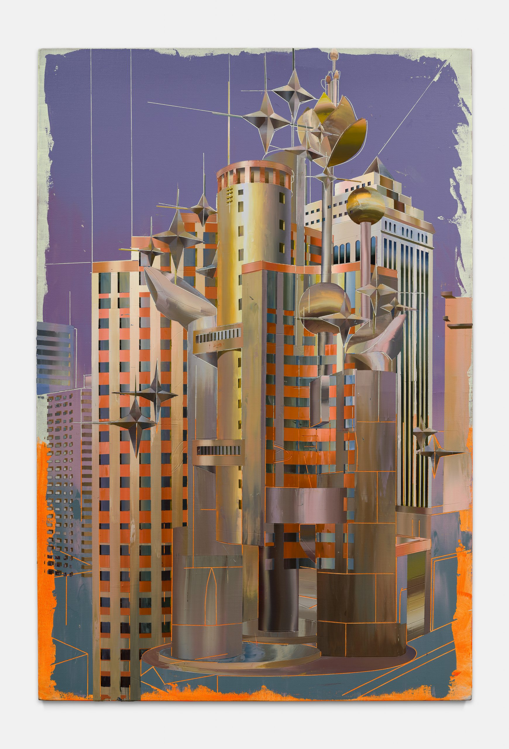 Representations of the future always look dated as soon as the future itself arrives. Part of China’s post-1980s generation, the artist Cui Jie makes paintings that continually confound our sense of time in their seeming nostalgia for the future. Set against a metallic sky and often floating above a similarly reflective gridded ground, Cui’s technically exquisite renderings of built forms not only capture a specific typology of urban China’s modernist artefacts; together with her more recent sculptures, they scrutinize the veracity of modernism as an ideology claiming the future. To the artist, who did a residency last year in Tel Aviv, the flawless International Style of the white city is appealing but not all that ‘interesting’. What compels her is precisely the opposite: the seemingly arbitrary, erratic and often jarring juxtaposition of an appropriated modernism against a context that is, in itself, rapidly shifting. Reconstructed amidst the chaos of China’s urban transition, the pristine, future-facing forms of Western modernism read as anachronisms.